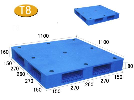 產(chǎn)品型號: HD-1111SP2產(chǎn)品貨號: T8 產(chǎn)品外尺寸: 1100×1100×160mm 產(chǎn)品內(nèi)尺寸: 產(chǎn)品結(jié)構(gòu): 雙面焊接平板面重型 產(chǎn)品內(nèi)容量(L): 承重量(T): 動載1.5噸,靜載6噸,貨架1噸 產(chǎn)品認可標(biāo)準(zhǔn): ISO9001:2000質(zhì)量體系認證 此款塑料托盤適用平地墊倉及碼垛使用,內(nèi)含5個螺栓,增加了托盤強度