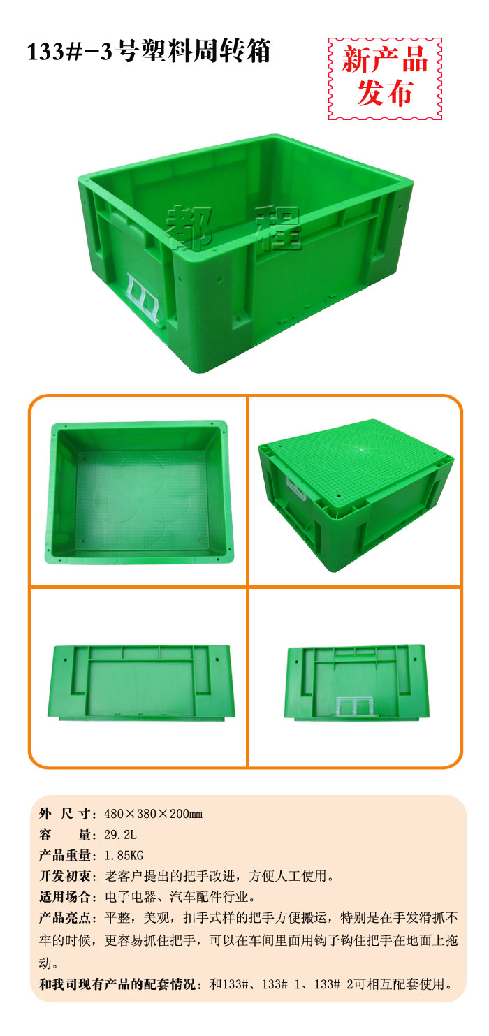 編號: x133-3 外尺寸(mm): 480*380*200 內(nèi)尺寸(mm): 440*340*195 內(nèi)容積(L): 29.2 備注: 適用于電子電器、汽車配件行業(yè)