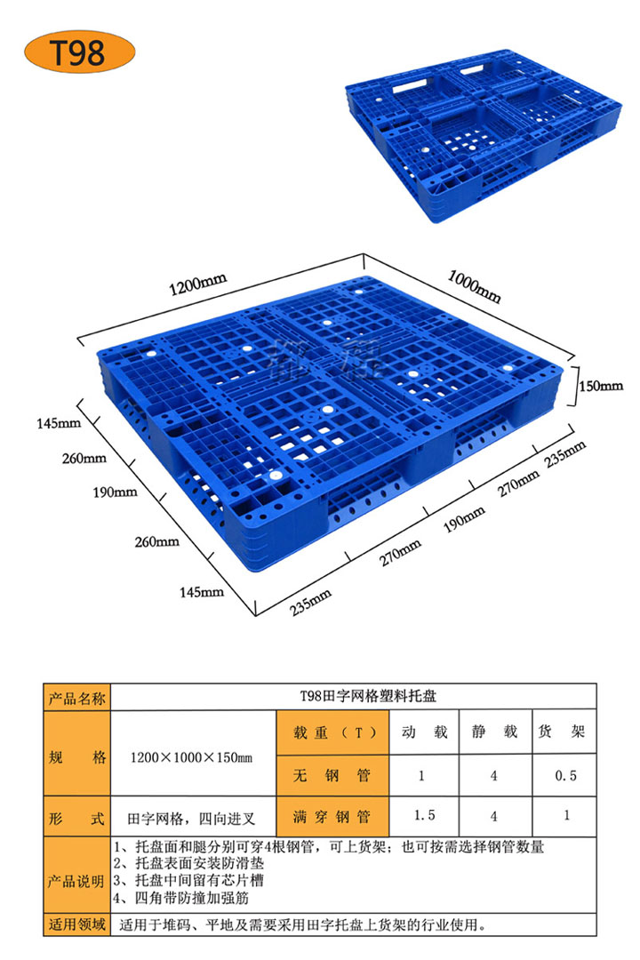 T98田字網(wǎng)格塑料托盤
